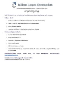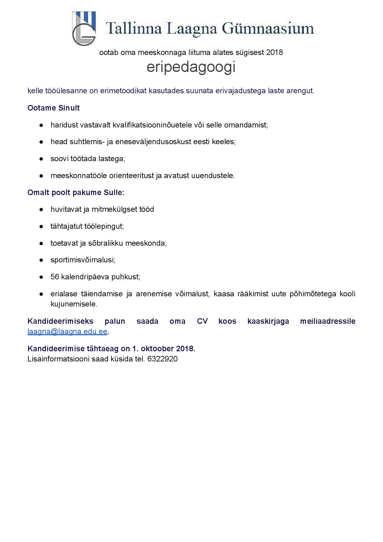 Tallinna Laagna Gümnaasium otsib oma kollektiivi eripedagoogi!